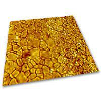 陶瓷 Al2O3的颗粒大小在2-4µm之间是可见的。使用AFM,可以轻松地研究各个陶瓷颗粒的形状。左侧的陶瓷颗粒清晰可见,而右侧的则可以通过金膜制成陶瓷的颗粒。